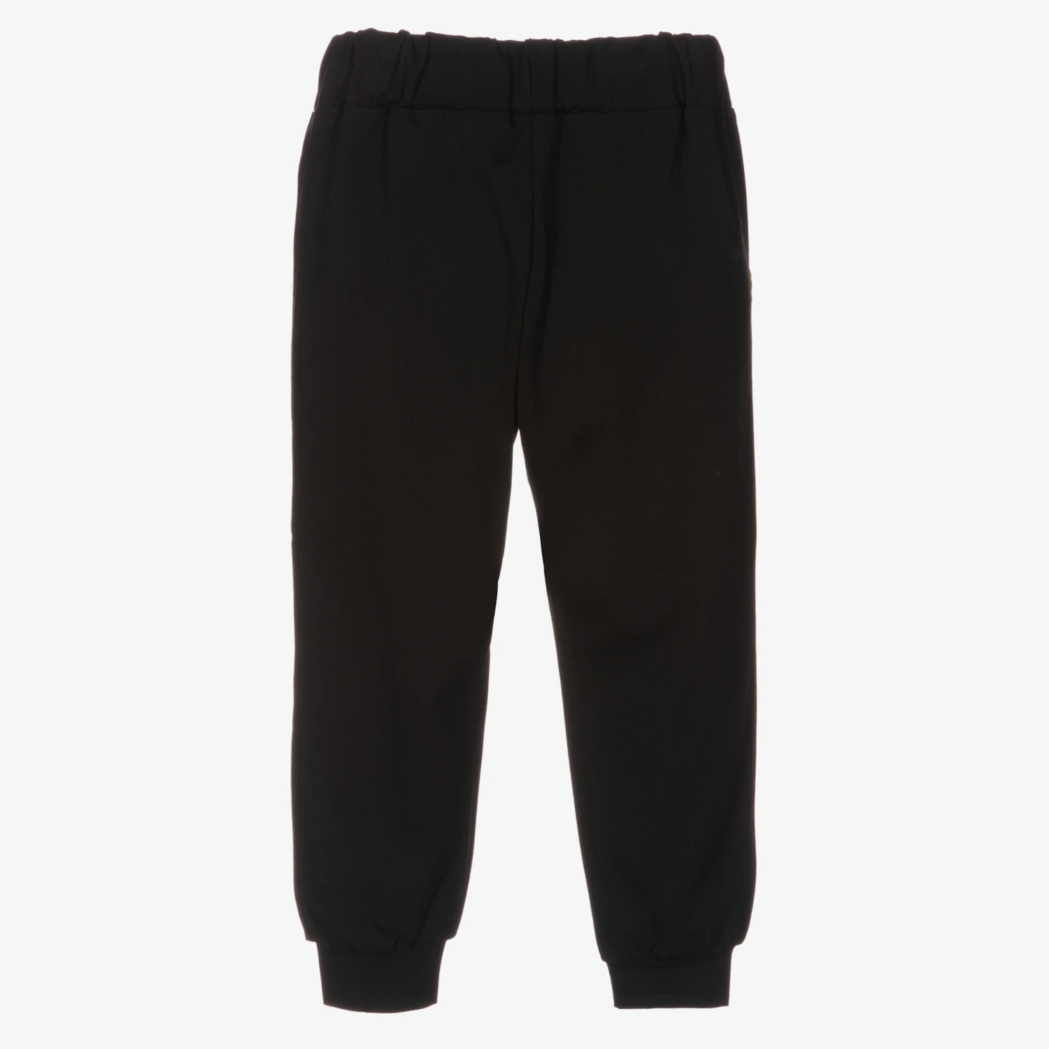 Black joggers for boys from Italian designer, Alviero Martini. They are trimmed with the brand’s distinctive dark beige Geo map print and have the 1a Classe logo on one leg. Made in luxurious Milano jersey, they have useful front pockets and a drawstring waist.