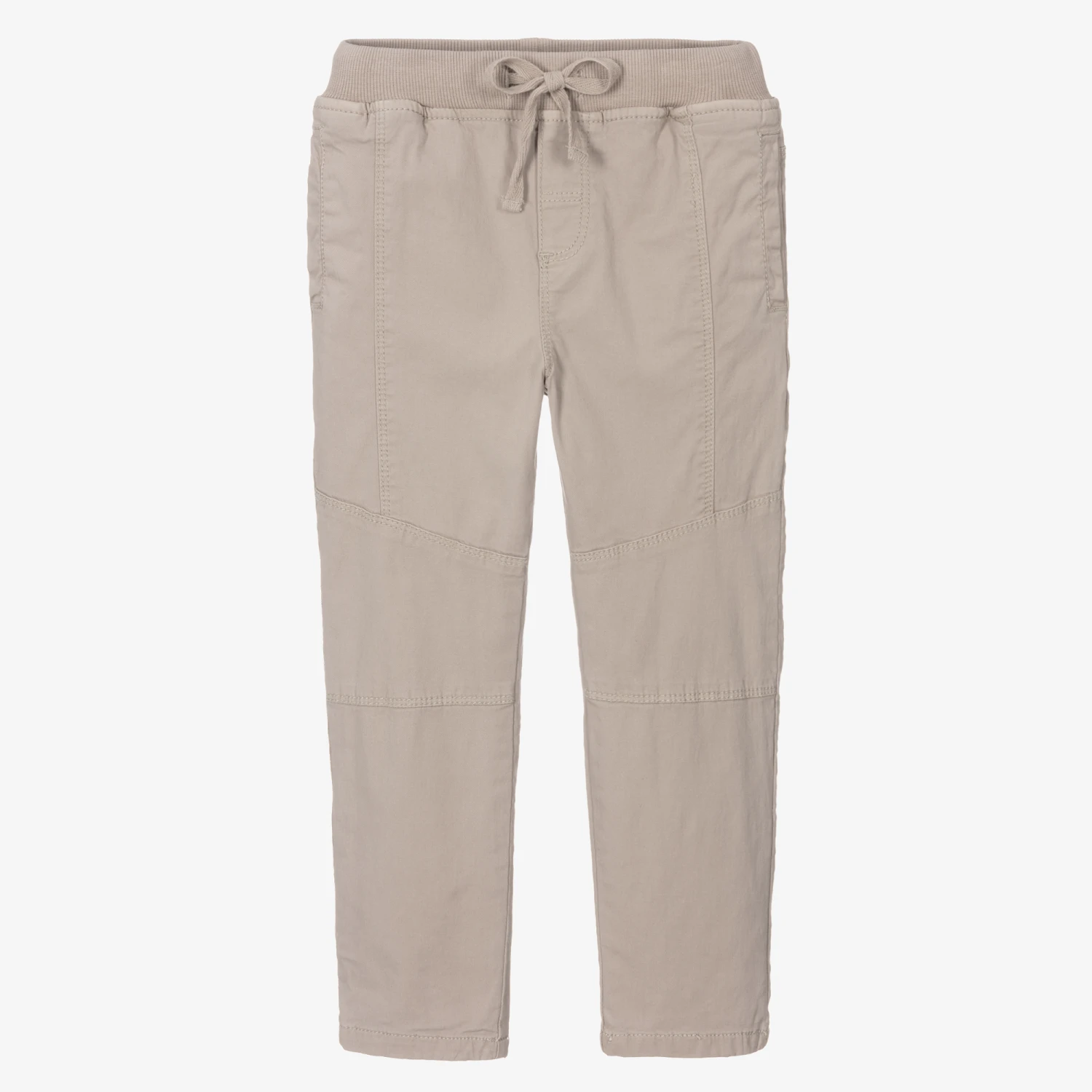 Smart-casual beige trousers for little boys, by Boboli. Woven in lightweight twill with a comfortable stretch, these slip-on trousers have stylish panel details, and a drawstring waist for a comfortable fit. They have a soft cotton jersey lining for added comfort.