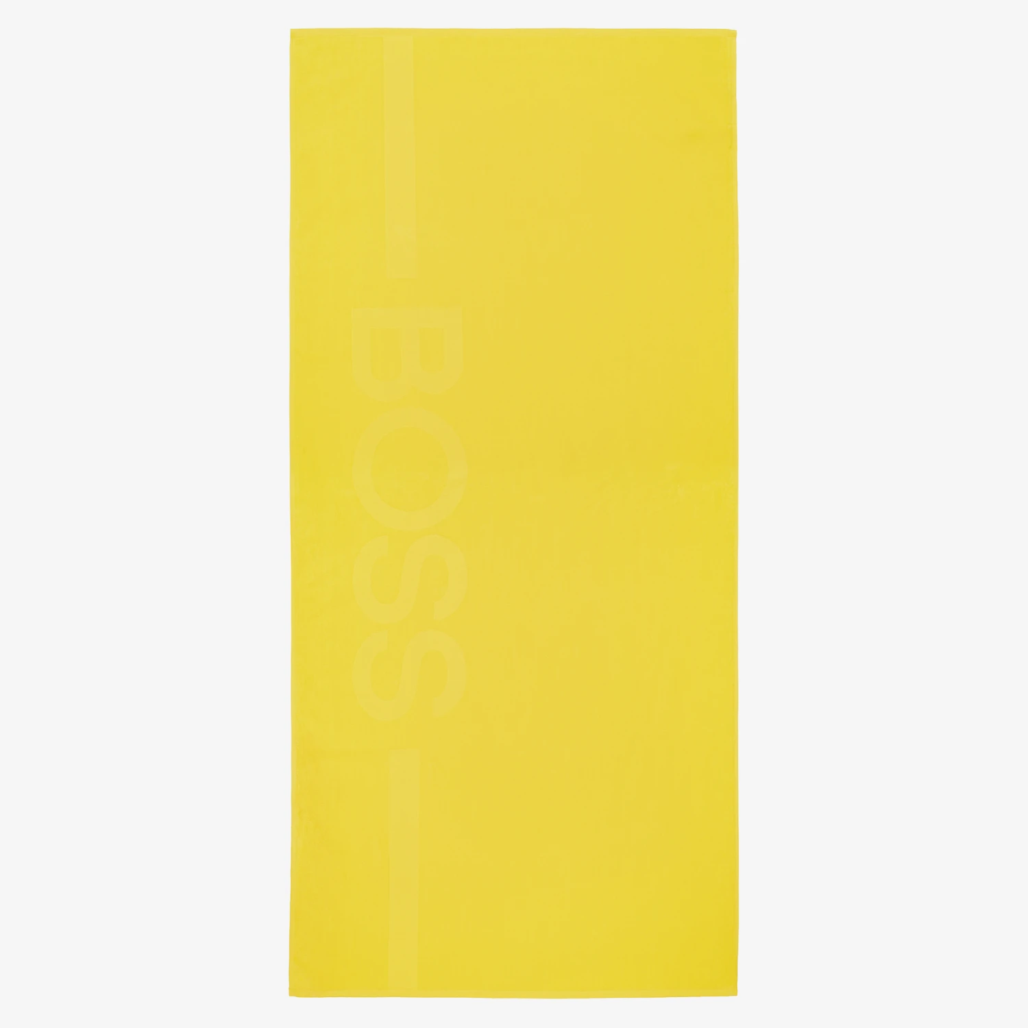 Large yellow bath towel for boys by BOSS Kidswear ideal to use at home or at the beach. Made in soft cotton towelling, it has a tonal logo on one side.