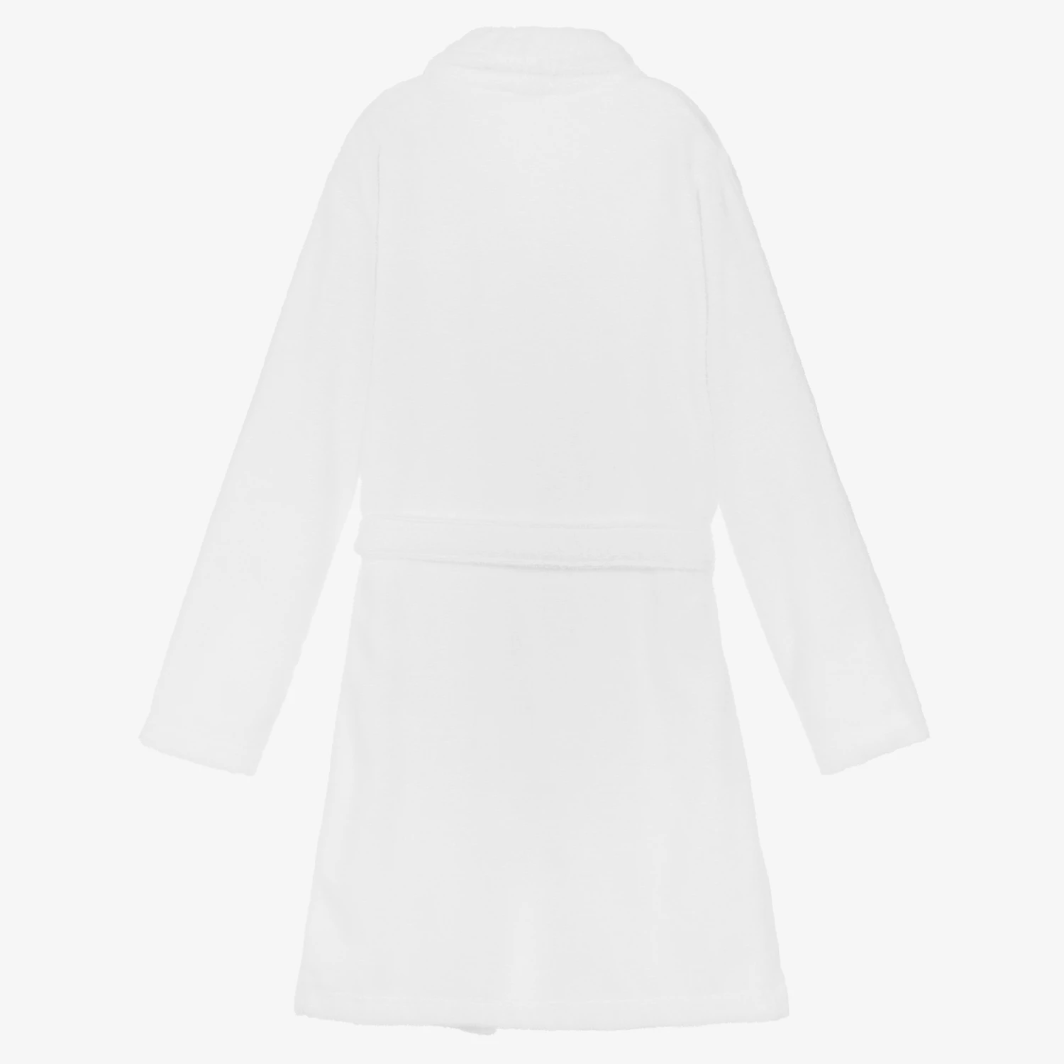 Cosy and comfy for boys, this white bathrobe is by Calvin Klein. Made in soft and absorbent terry cotton, it is ideal loungewear after a bath or swim, or while relaxing before bedtime. It has a detachable tie belt, with a black signature logo label on the chest. At least 50% organic cotton.