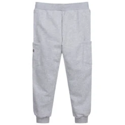 Black cotton joggers for boys by American brand DKNY, made from a mid-weight cotton jersey blend. Sporty in style, they have a white logo print on one leg and white coated trims on the sides of the legs. They have concealed side pockets and an elasticated waist for comfortable wear.