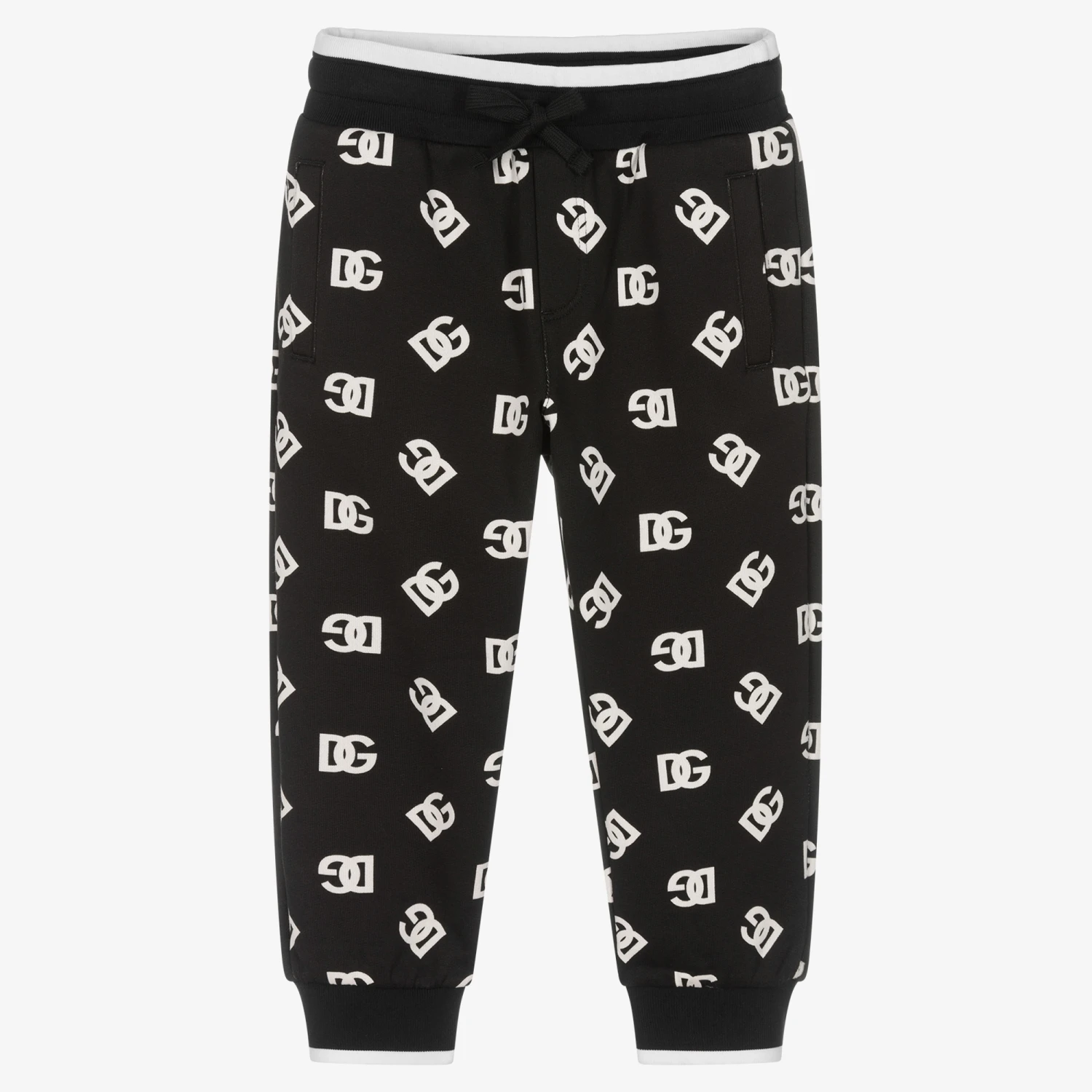 Dolce & Gabbana Boys Black & White Cotton DG Logo Joggers