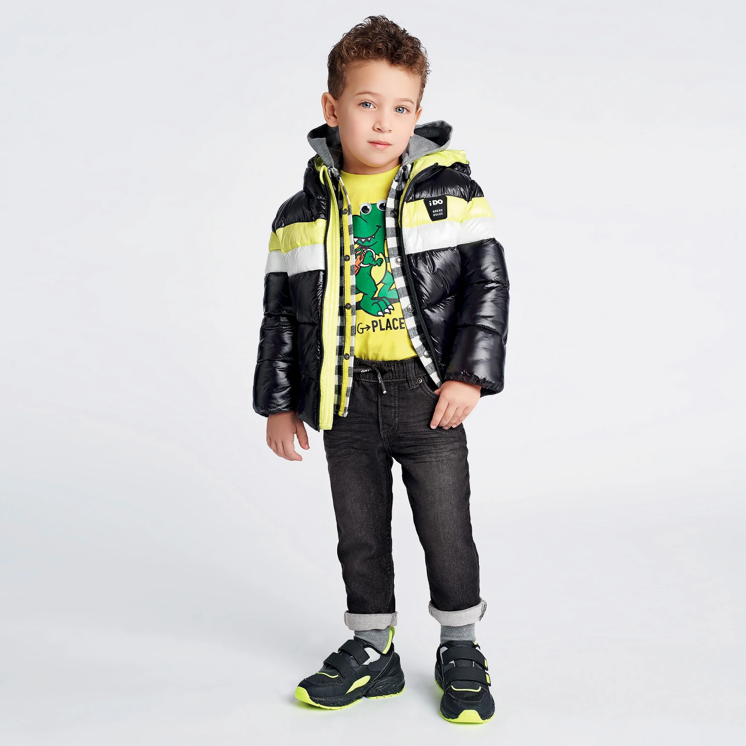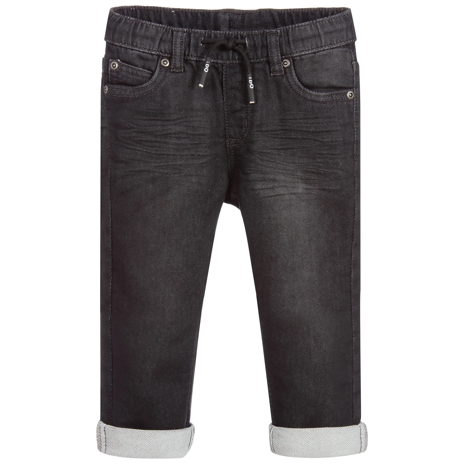 Boys black jersey jeans by iDO Baby. Soft and comfortable, the are made in a mid-weight cotton blend jersey with the look of washed denim. They have an elasticated drawstring waist, a ‘joggers fit’ and pockets on the front and back.