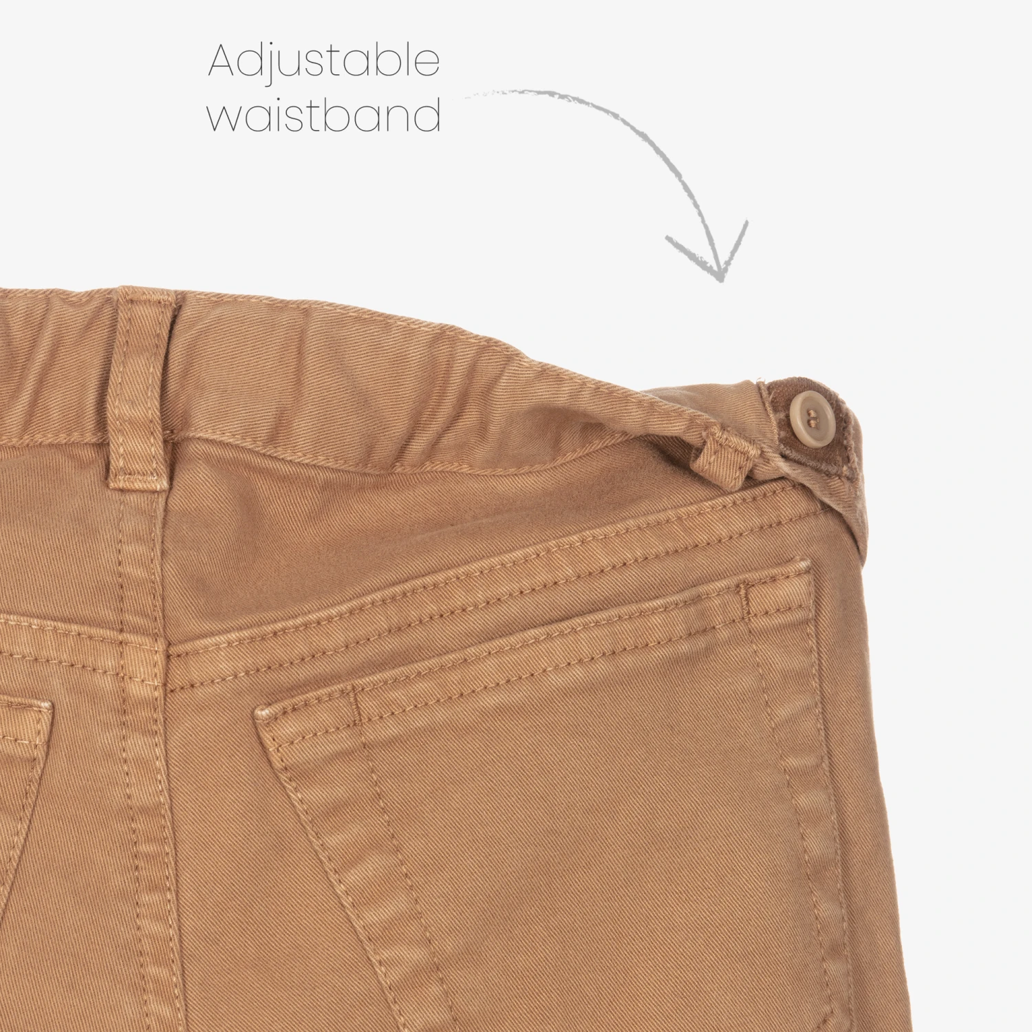 - Adjustable waist on all sizes