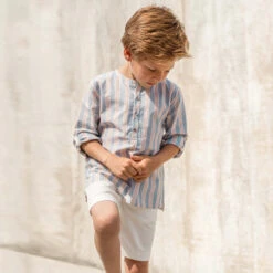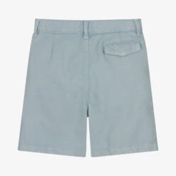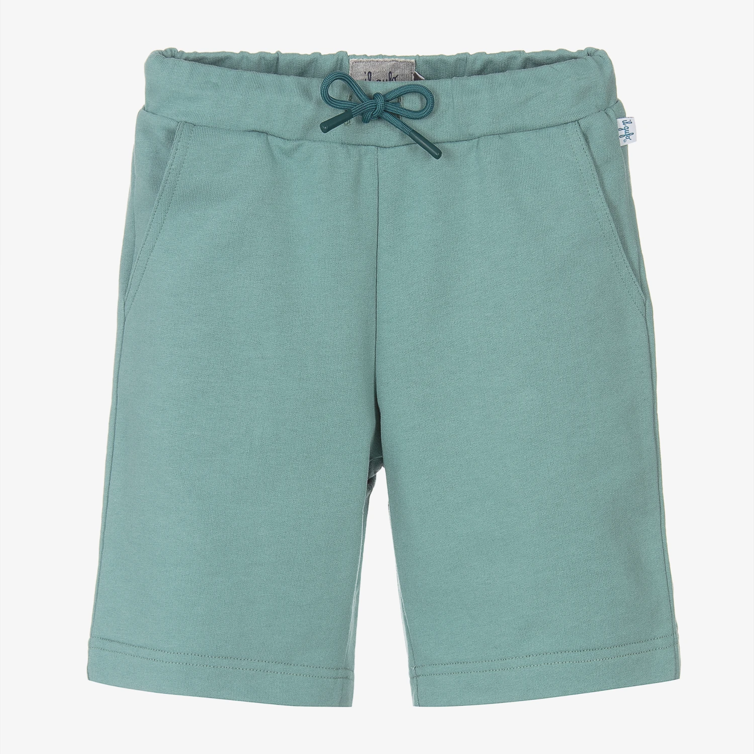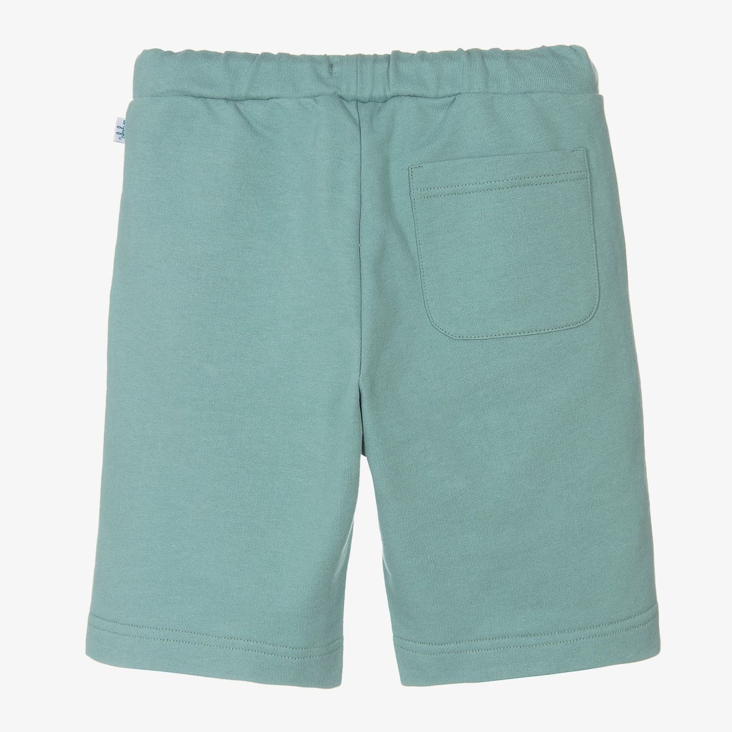Mid-blue cotton shorts for boys from luxury Italian brand Il Gufo, made from soft sweatshirt jersey. This everyday casual style features two slanted front pockets, a patch pocket on the back and a drawstring on the gently elasticated waist for improved fit.