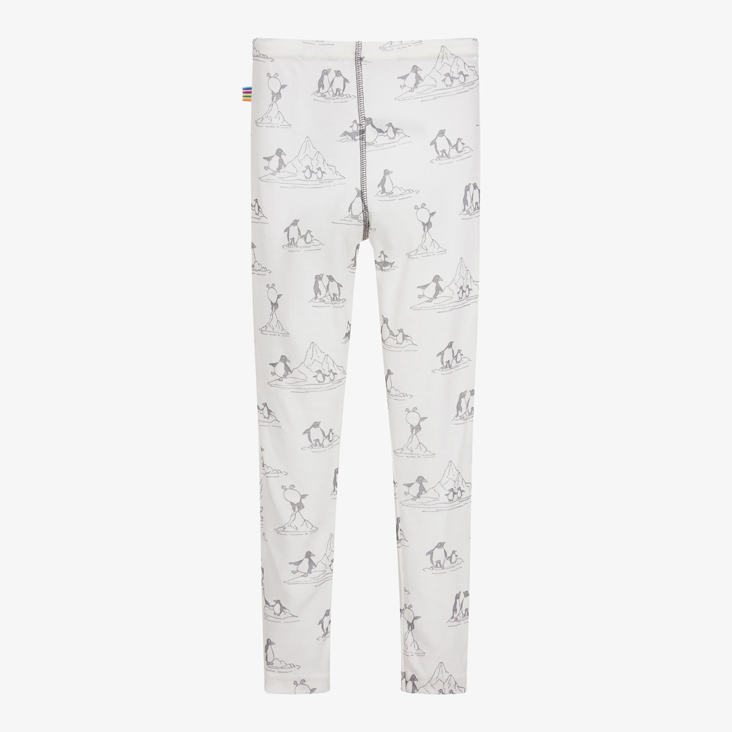 Ivory thermal leggings with a cute penguin print for boys and girls by Joha. They are made in a soft and stretchy Merino wool and silk blend, with a comfortable elasticated waist.