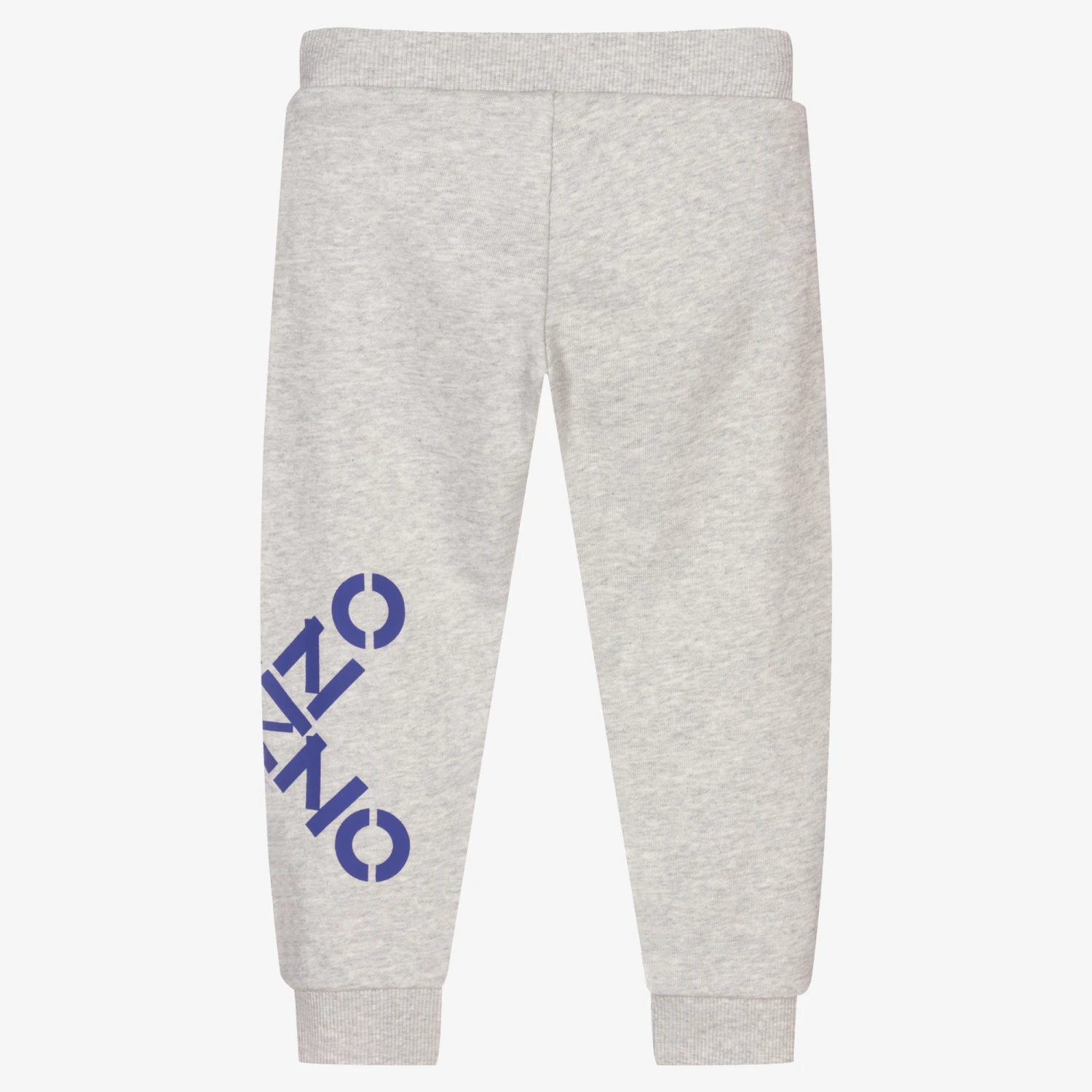 Grey marl cotton joggers for boys by KENZO KIDS. Made with soft and stretchy, mid-weight jersey, the designer’s X logo is printed on one leg in blue. There are side pockets and a branded drawstring on the elasticated waist.