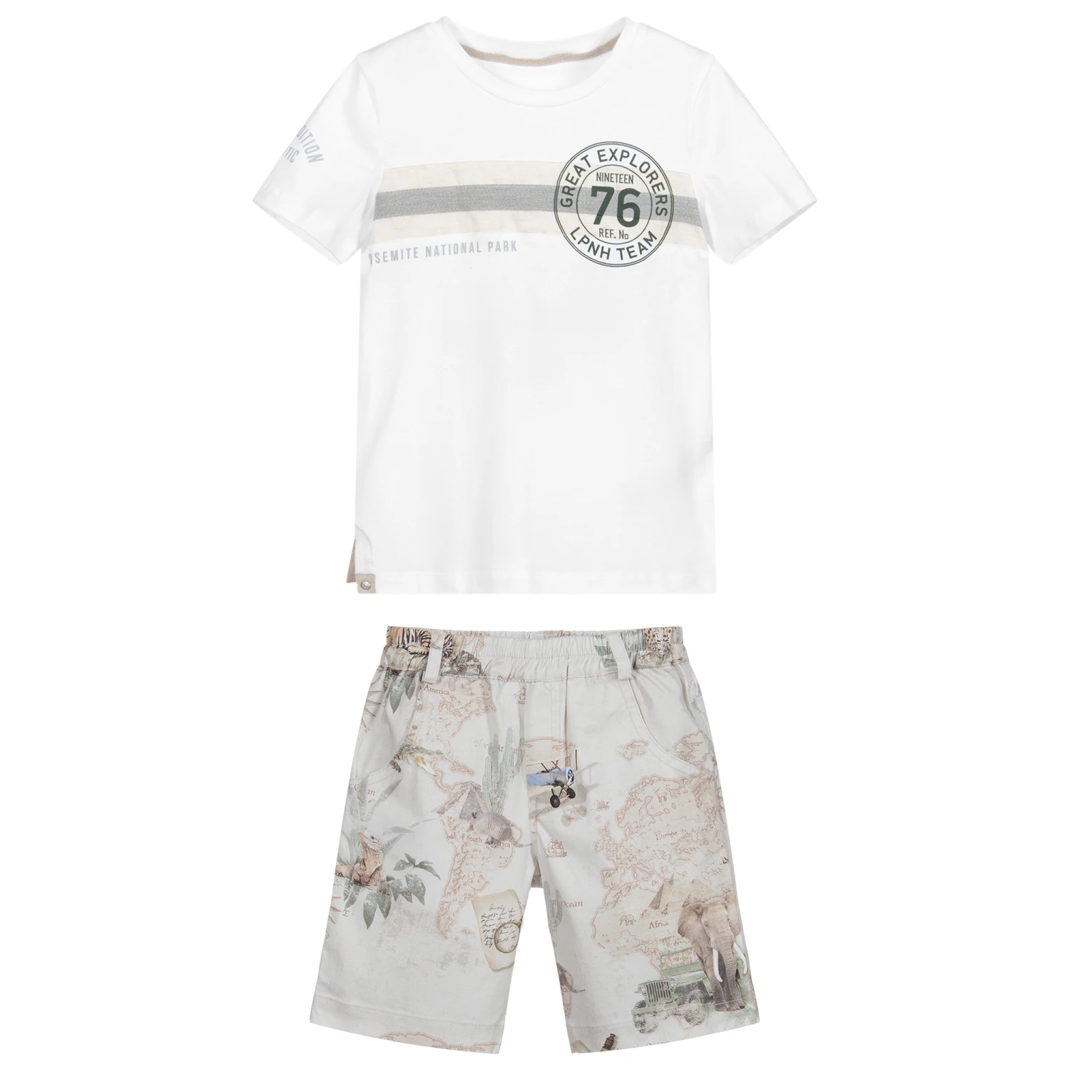 Lapin House White & Beige Shorts Set
