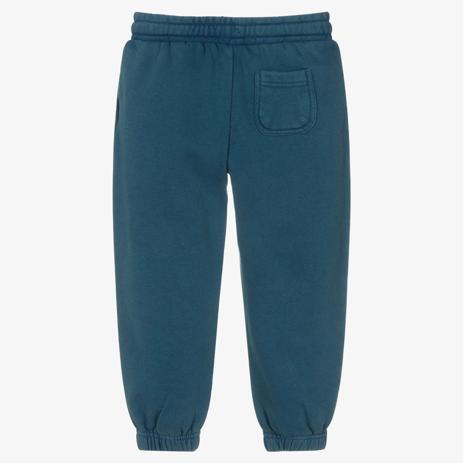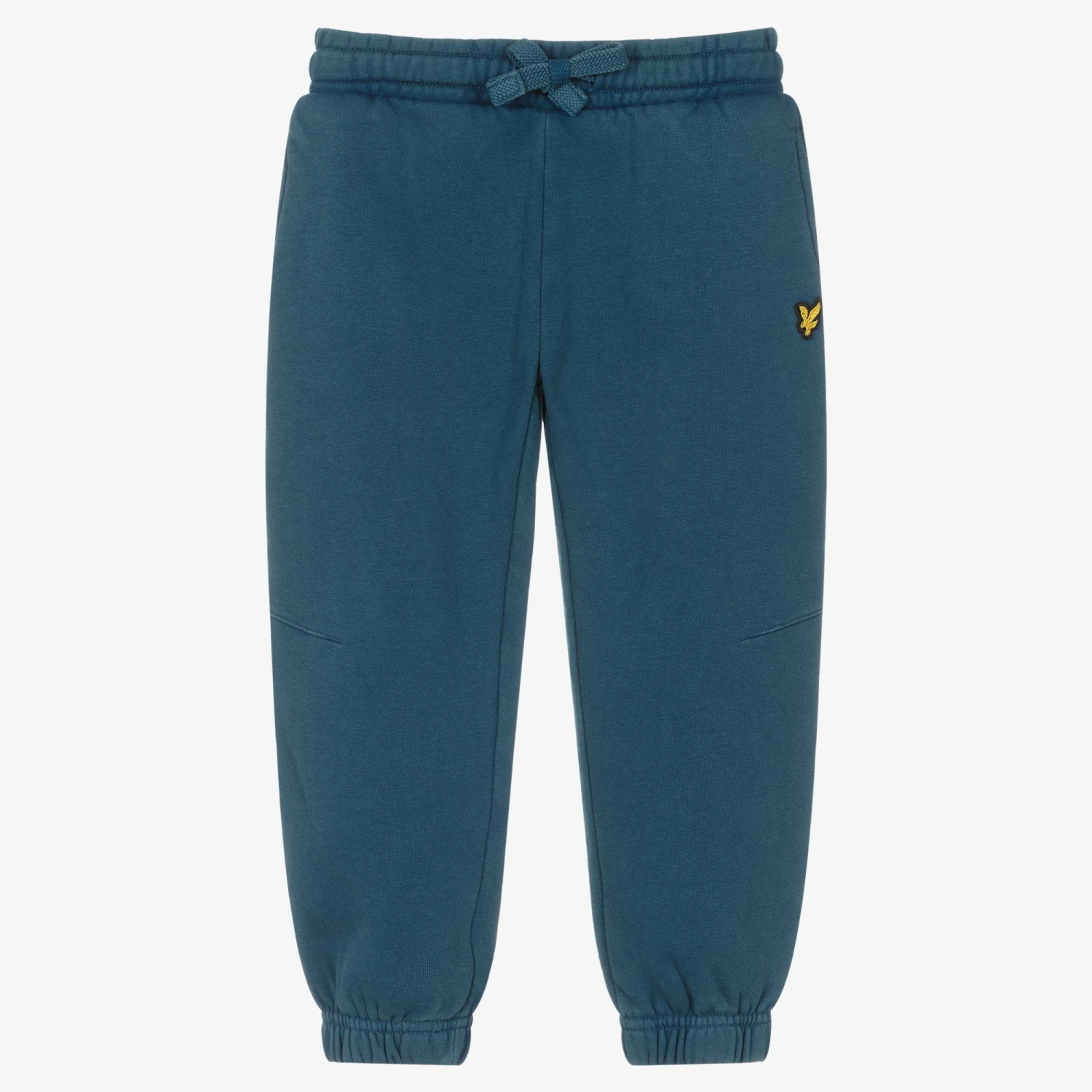 Blue joggers for boys by Lyle & Scott, made in a soft, mid-weight cotton jersey with a fleecy inside. These comfortable joggers have an elasticated waist, with a drawstring tie and handy pockets on the sides and back. The brand’s signature Eagle logo is appliquéd on one leg.