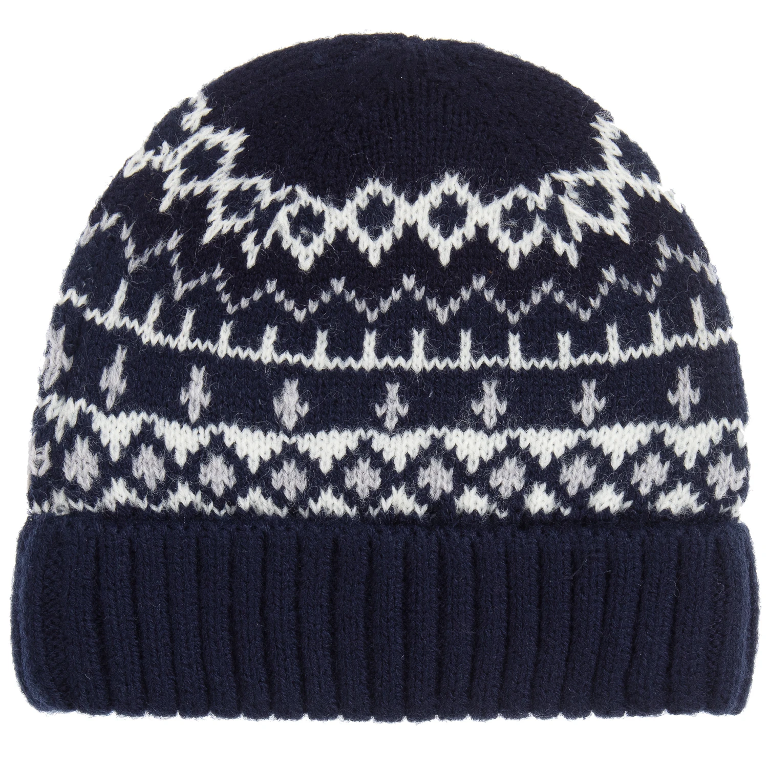 Baby navy blue hat and scarf set by Mayoral, knitted in a soft acrylic. This sweet set has an ivory Fair Isle pattern.
