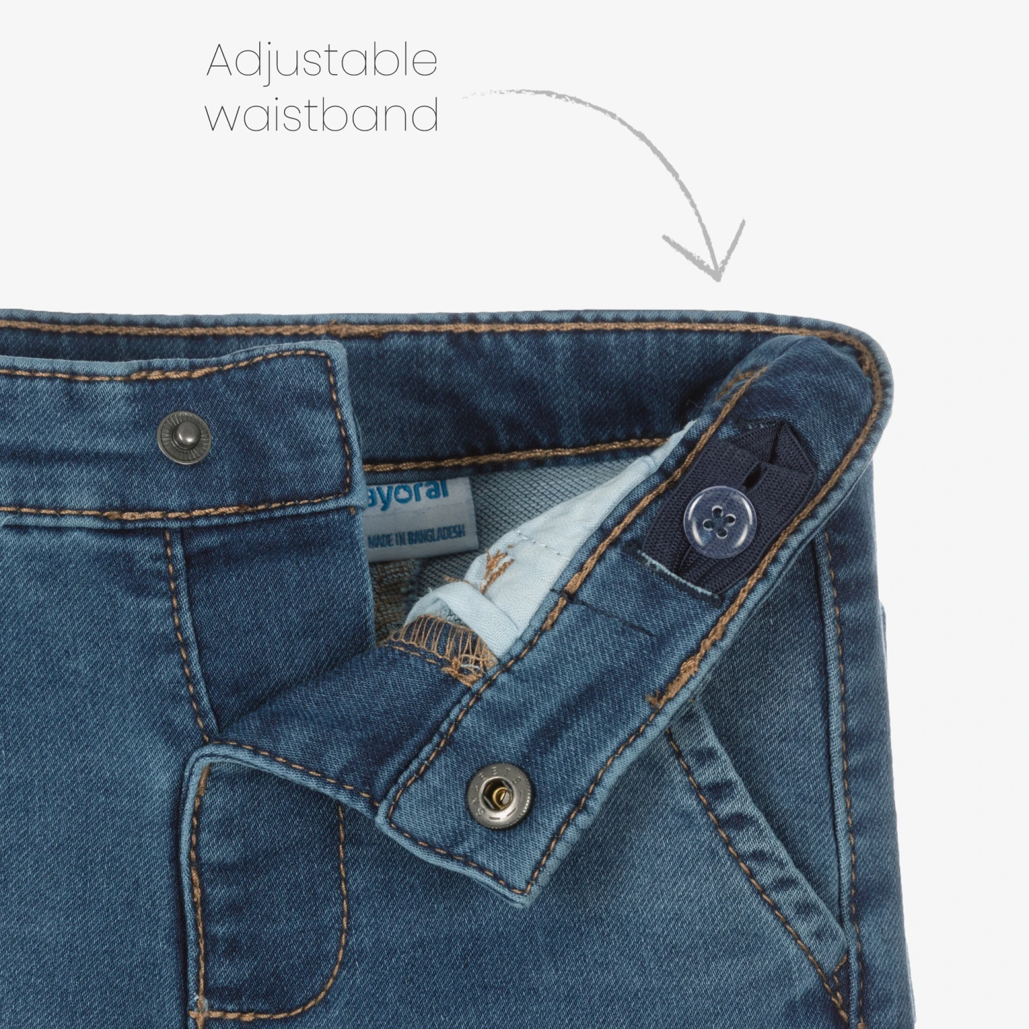 - Adjustable waist on all sizes