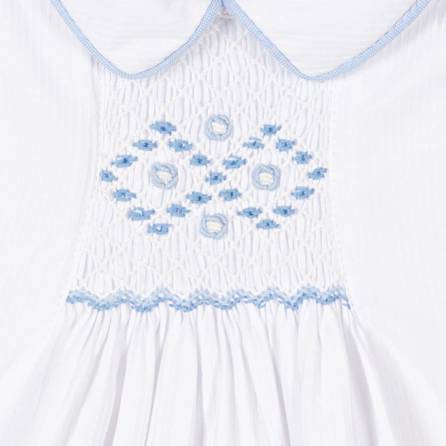 - Hand-embroidered & smocked