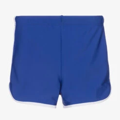 Fun blue swim shorts for boys by Sunuva, made in lightweight polyester. Lined in soft and lightweight mesh, it has a cool grey rhino print all-over with orange and yellow tropical flowers, and a grey drawstring.