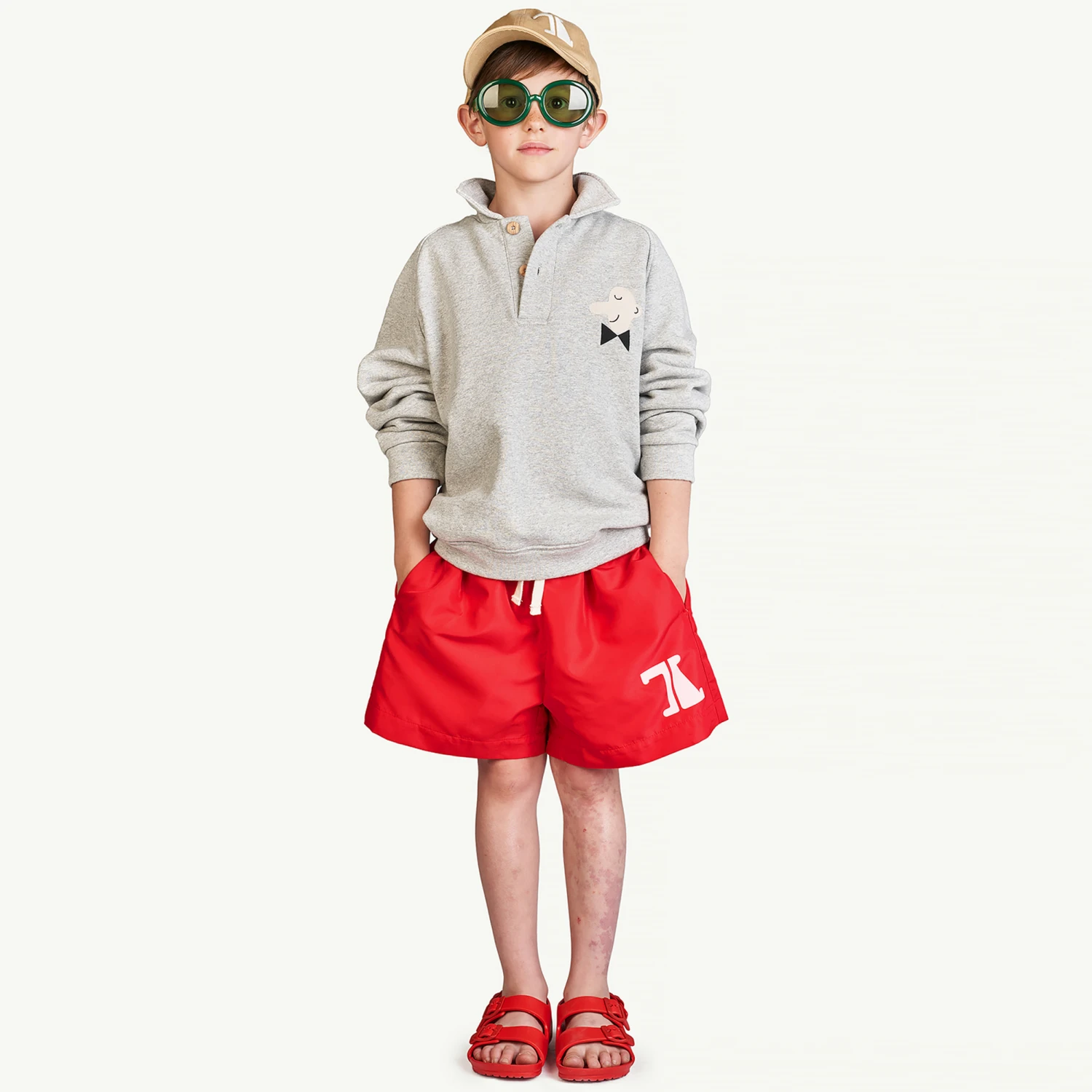 The Animals Observatory Boys Red Logo Swim Shorts