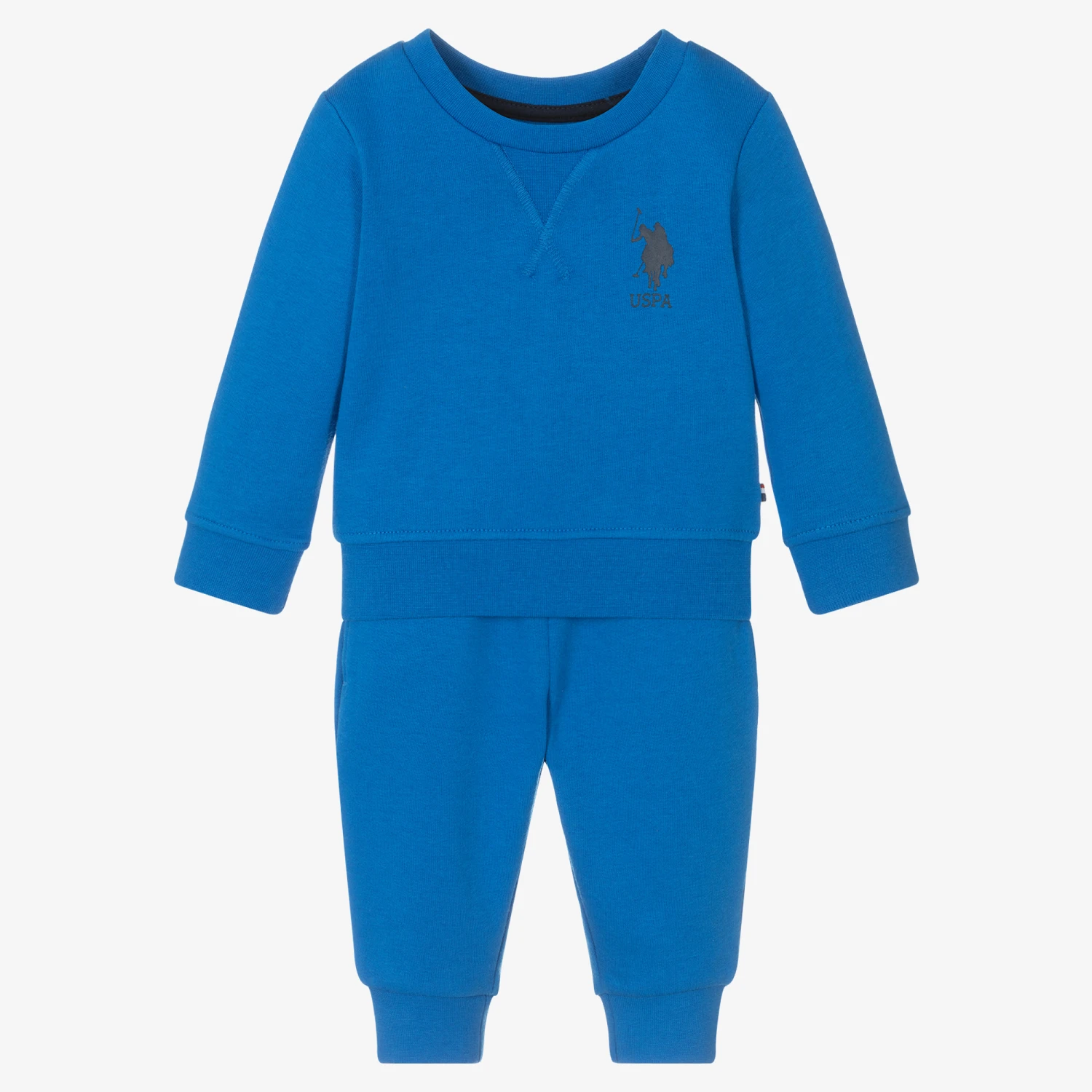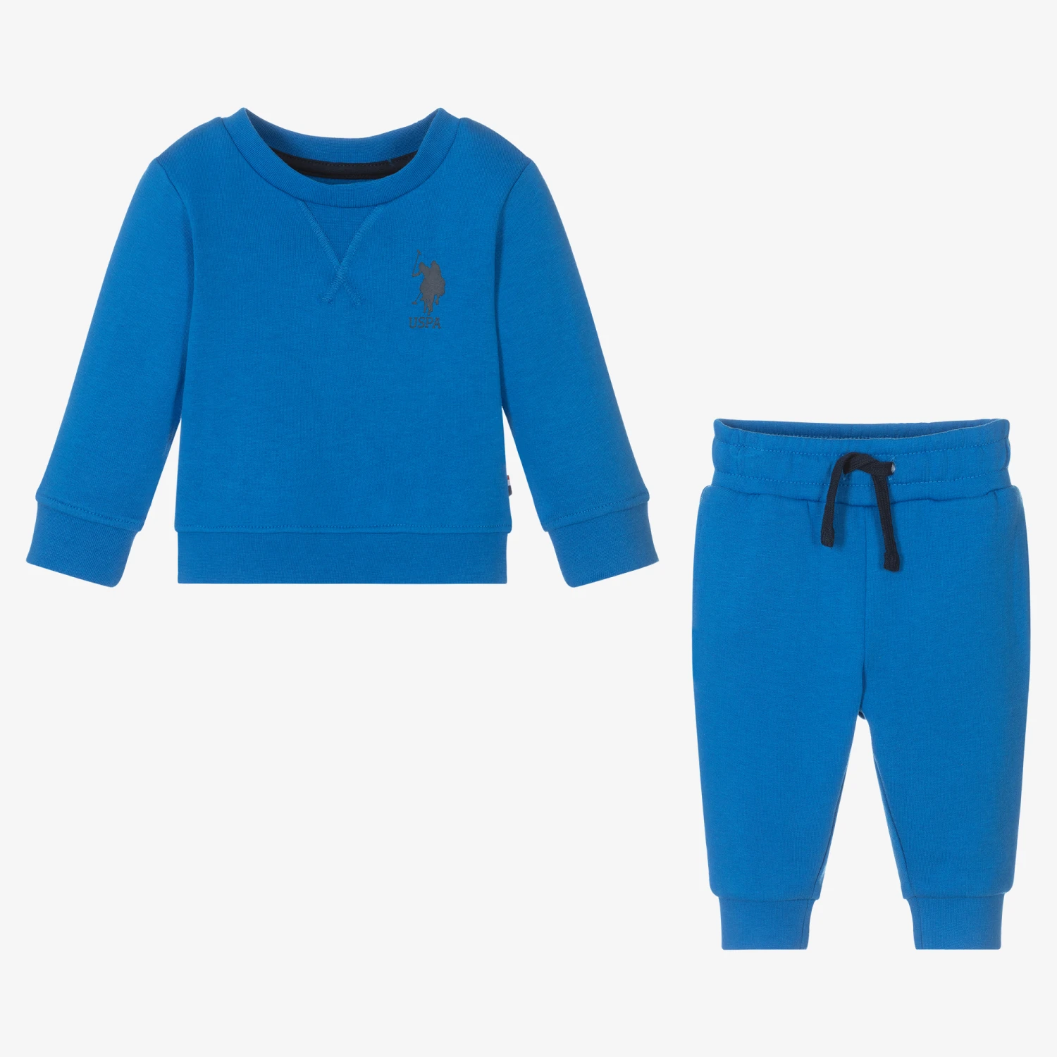 Comfortable bright blue tracksuit for little boys by U.S. Polo Assn., made in soft cotton-blend jersey. The joggers have side pockets and an elasticated waistband with a faux drawstring detail. The top has a printed logo on the chest and a branded tab on the side seam.
