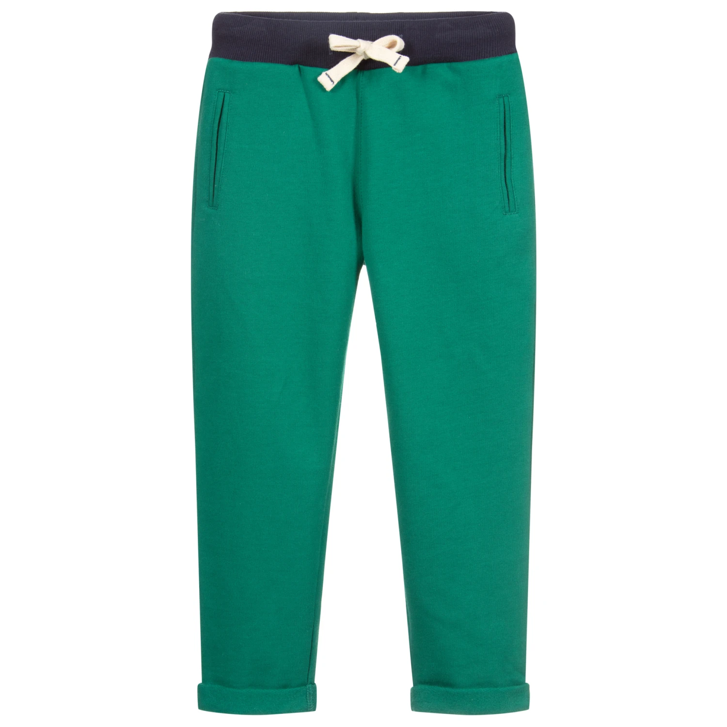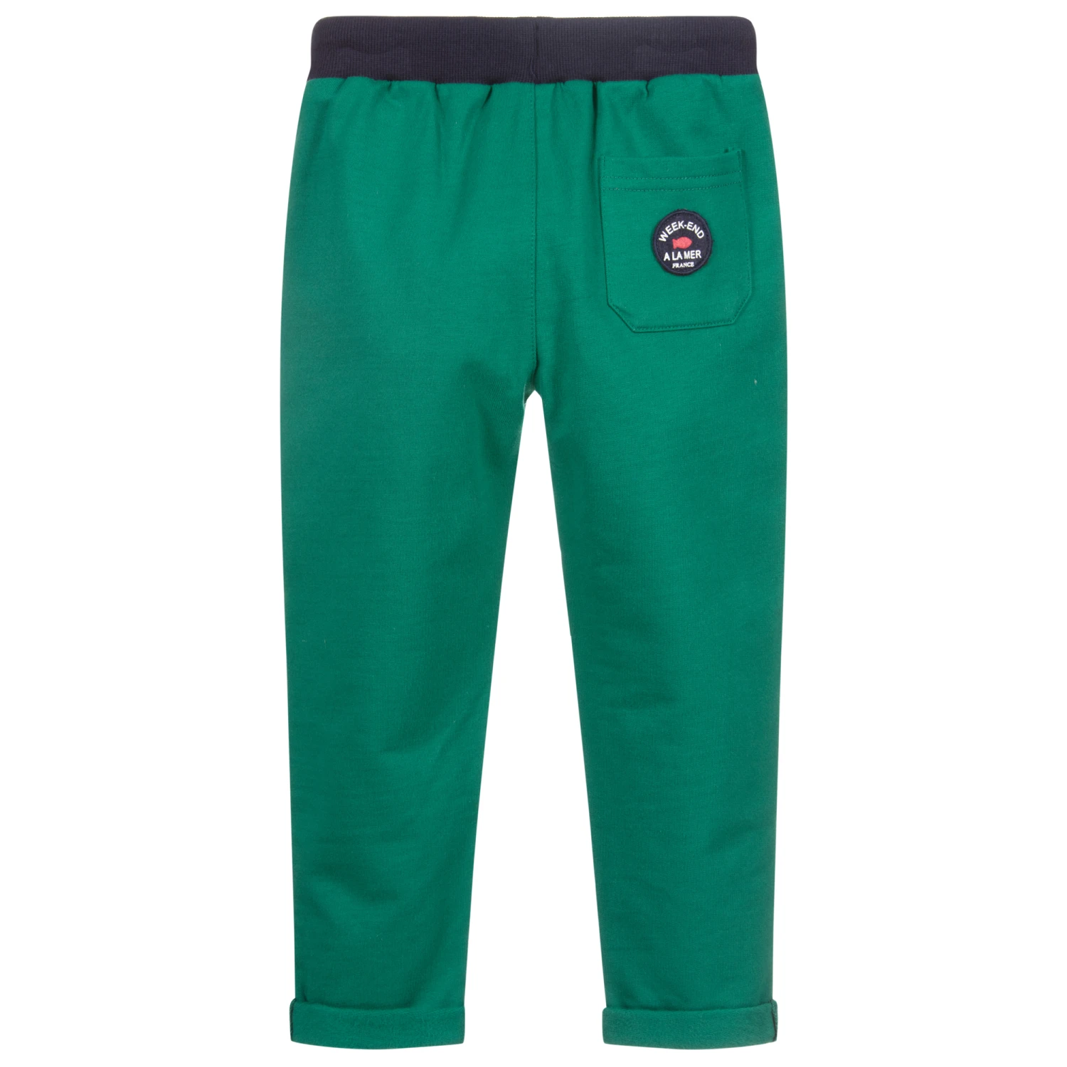 Green joggers by French brand Week-end à la mer. They are made in comfortable cotton jersey with a warm fleecy inside. There is a useful drawstring waistband and pockets on both the front and back.